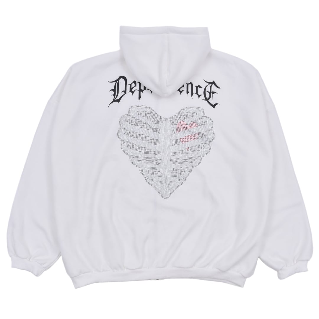 ラインストーン ハートBONE ZIPパーカー(裏起毛)