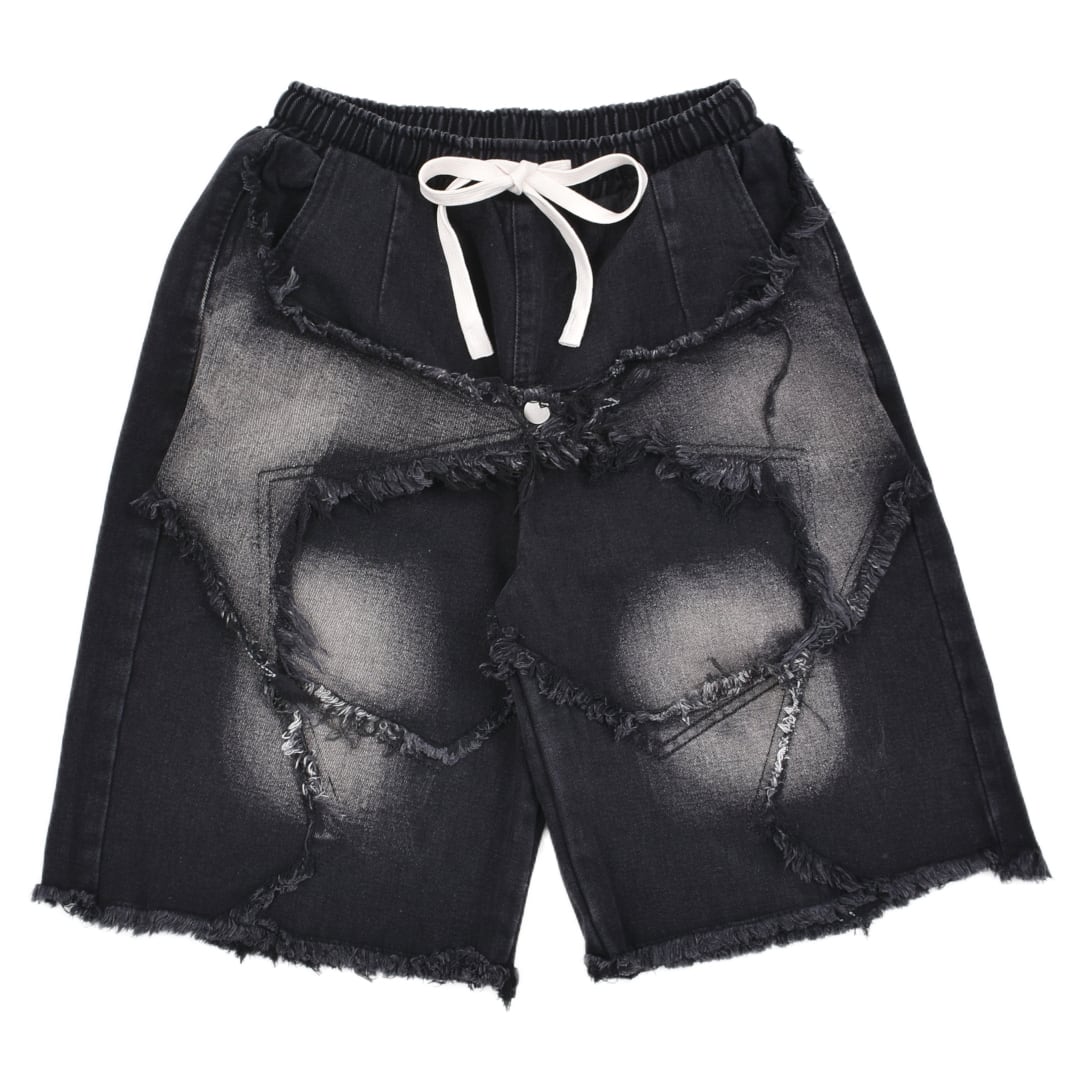 ウエスト周りのラップデザインや、ヘム周りの星形のダメージパッチなどデザイン性の高い仕上がりが特徴。