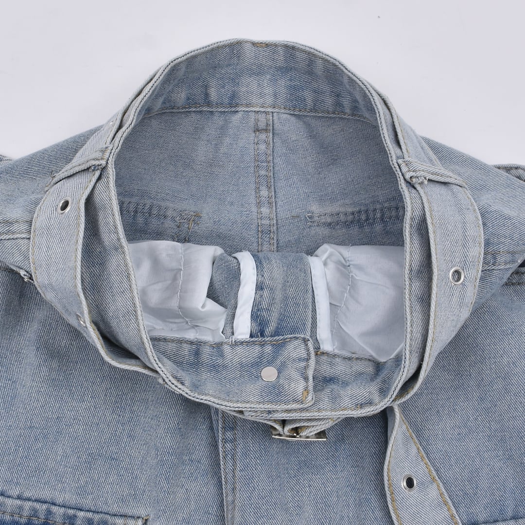 カーゴパンツのデザインをベースにデニム生地で再構築した1本。