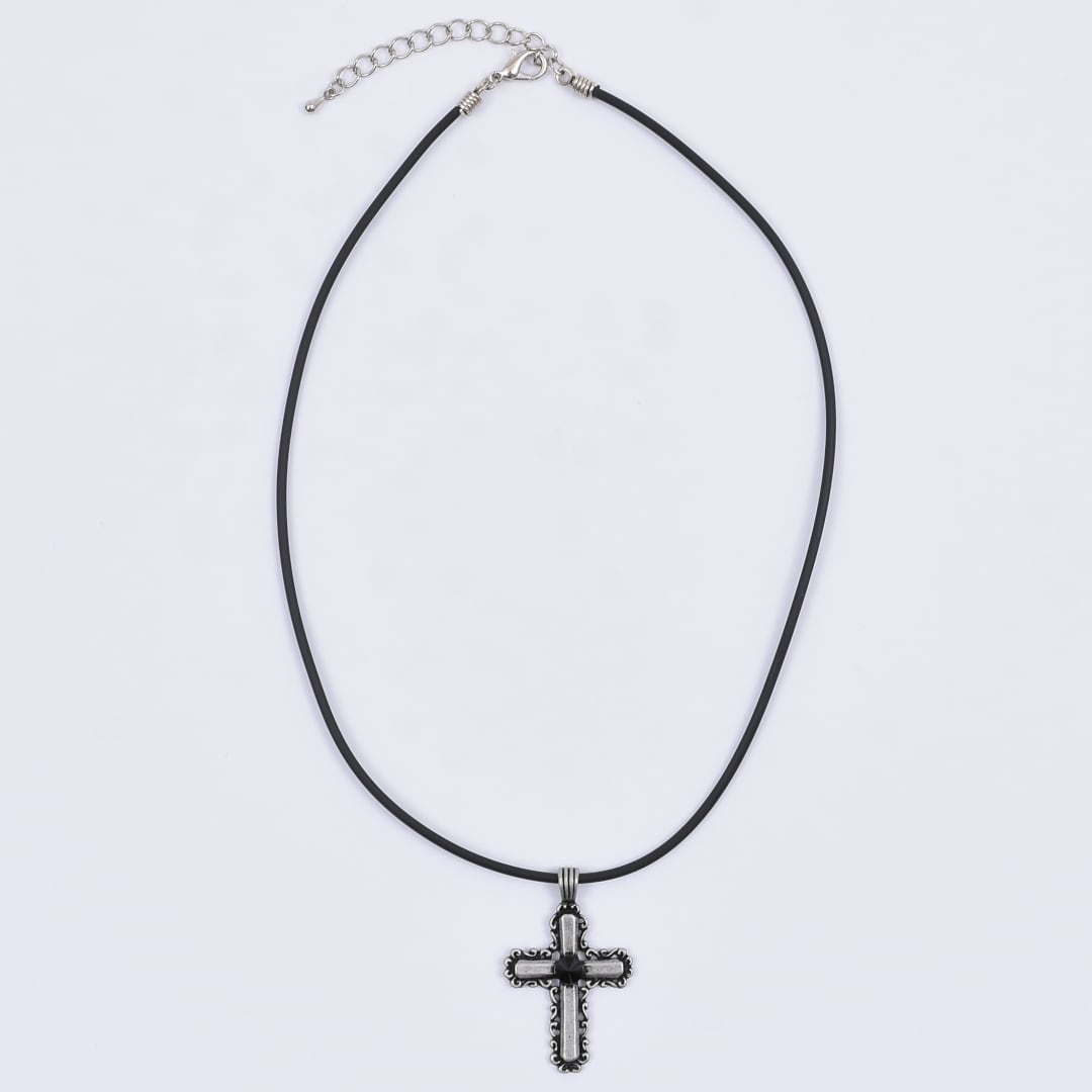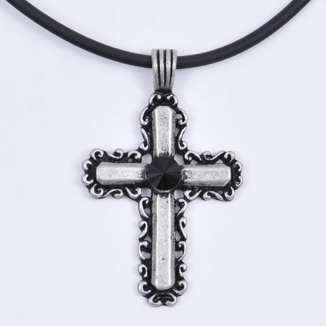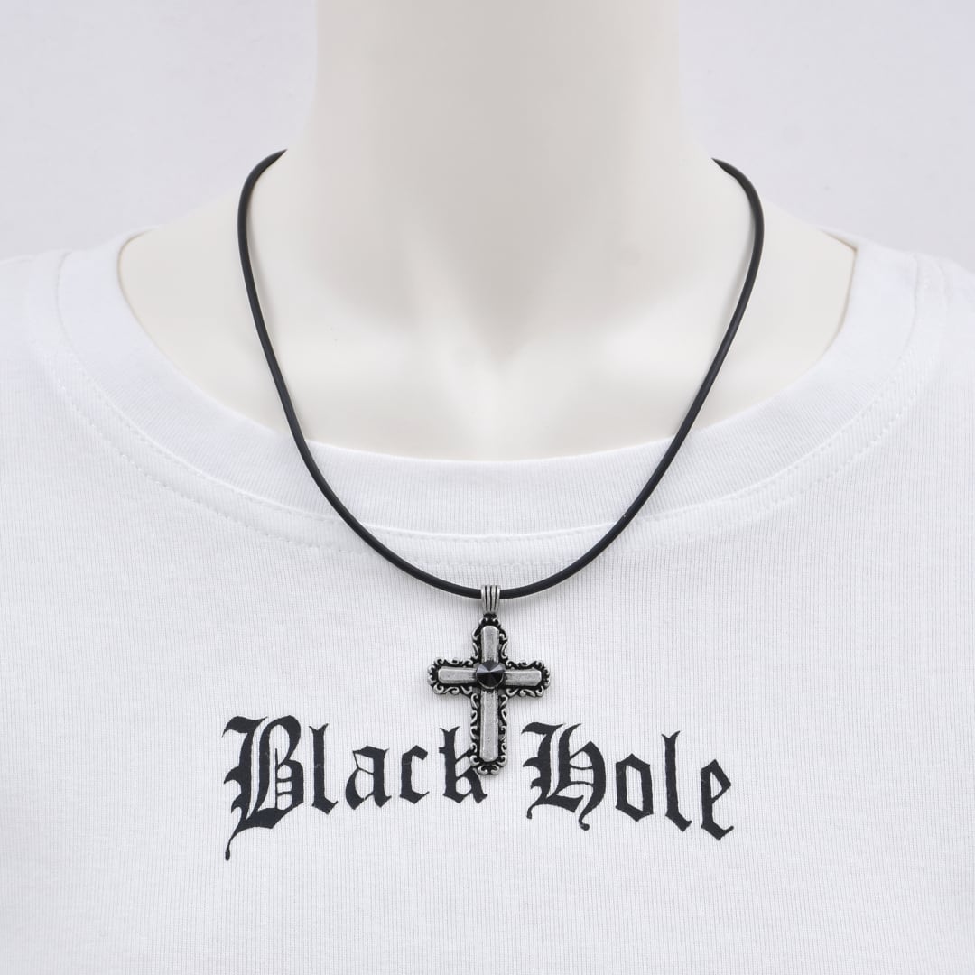 チェーンのコードデザイン、ラインストーンを施したクロスのチャームが印象的なネックレス