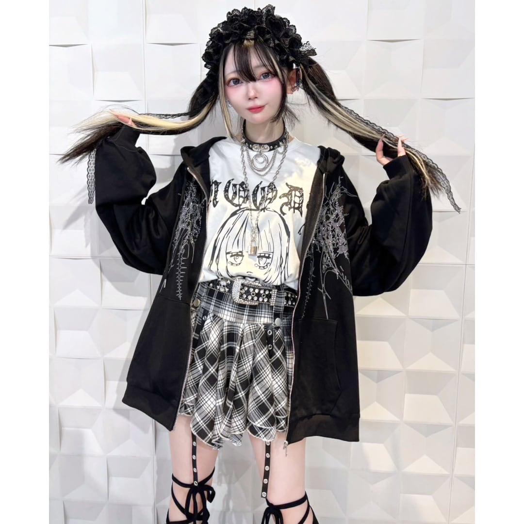 ラインストーンとプリントを組み合わせた、トライバルパターン(幾何学柄)がインパクトあるZIPパーカー