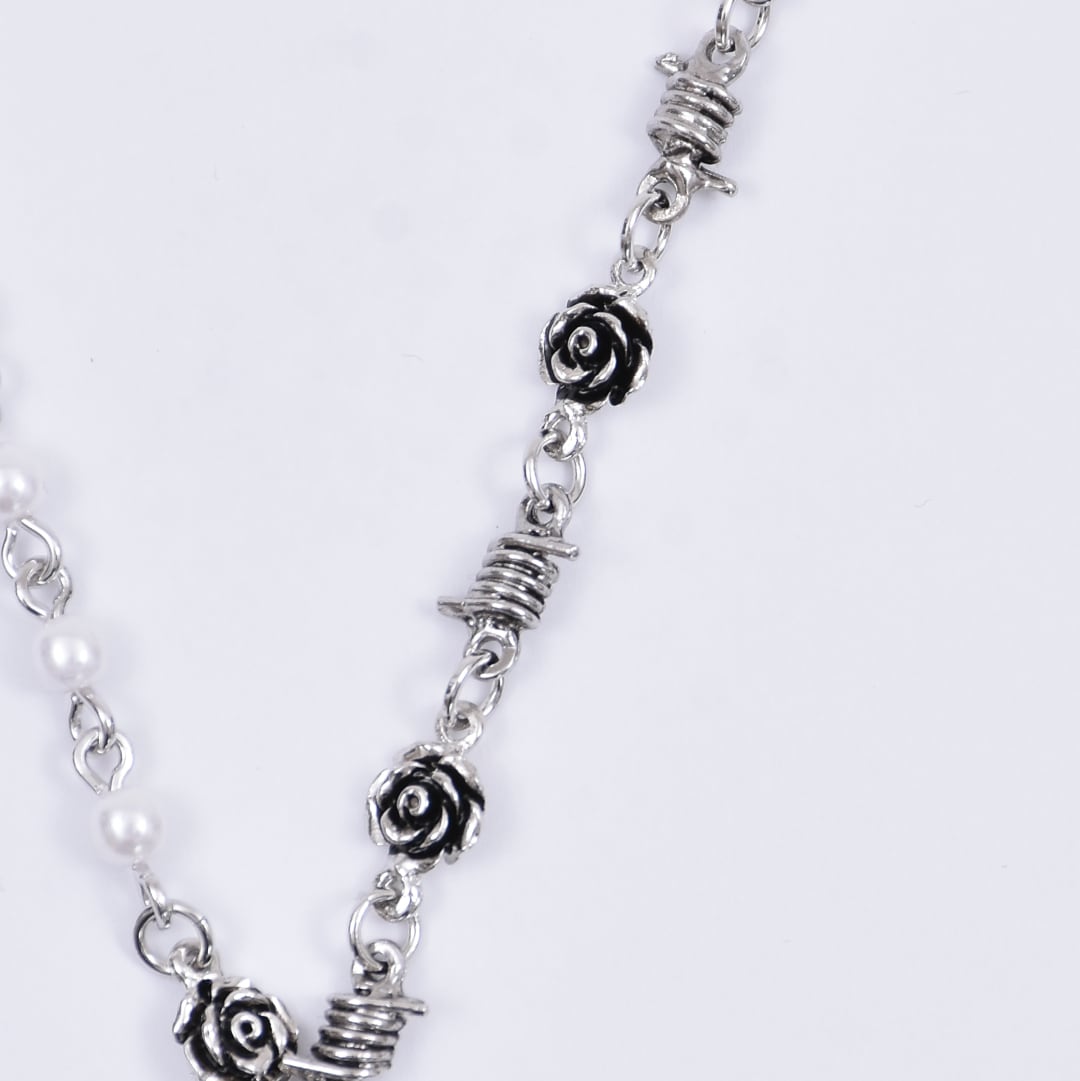 アシンメトリーなチェーンデザイン、ラインストーンを施したクロスのチャームが印象的なネックレス