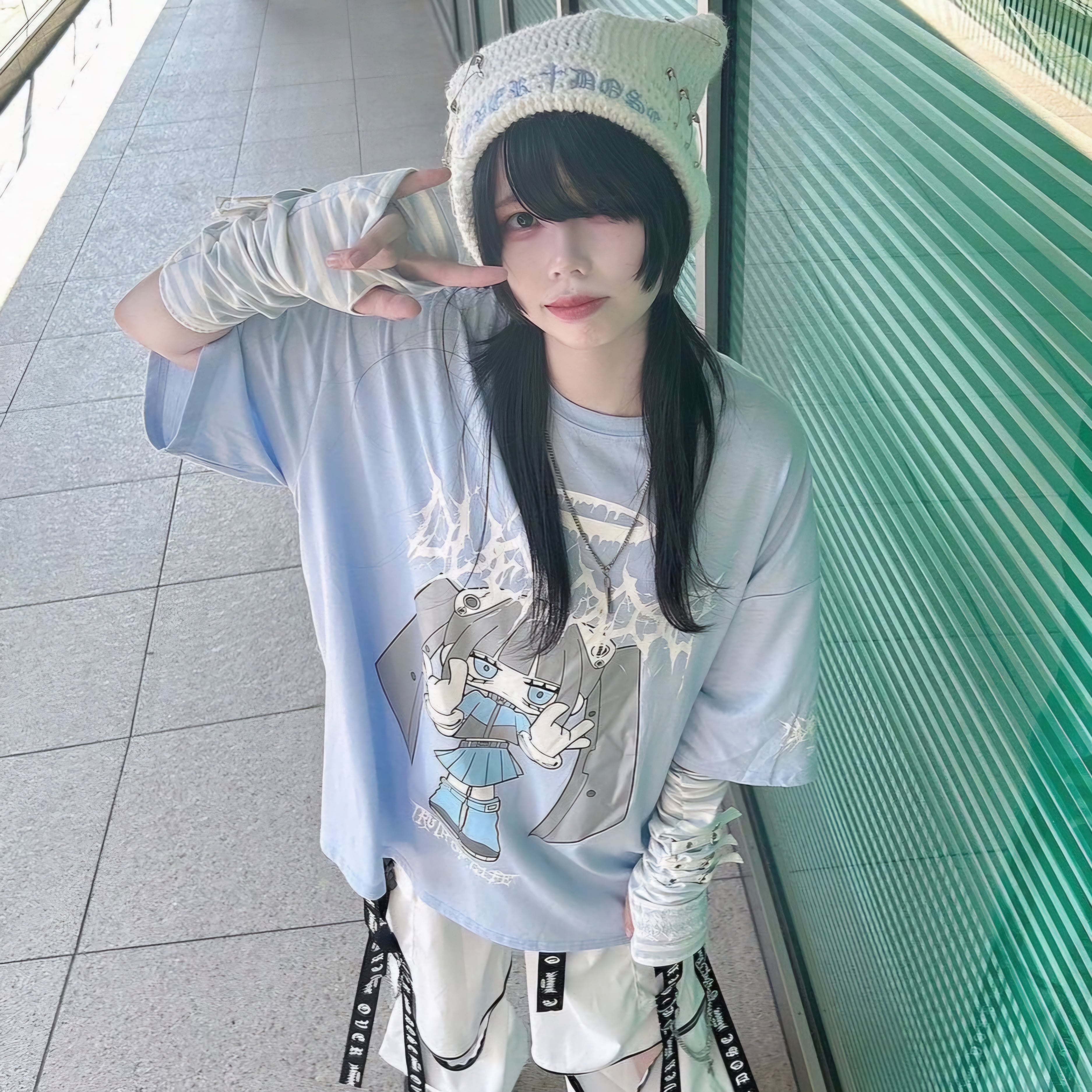 彼女が手書きでイラストをデザインしたオリジナルプリントTシャツ
