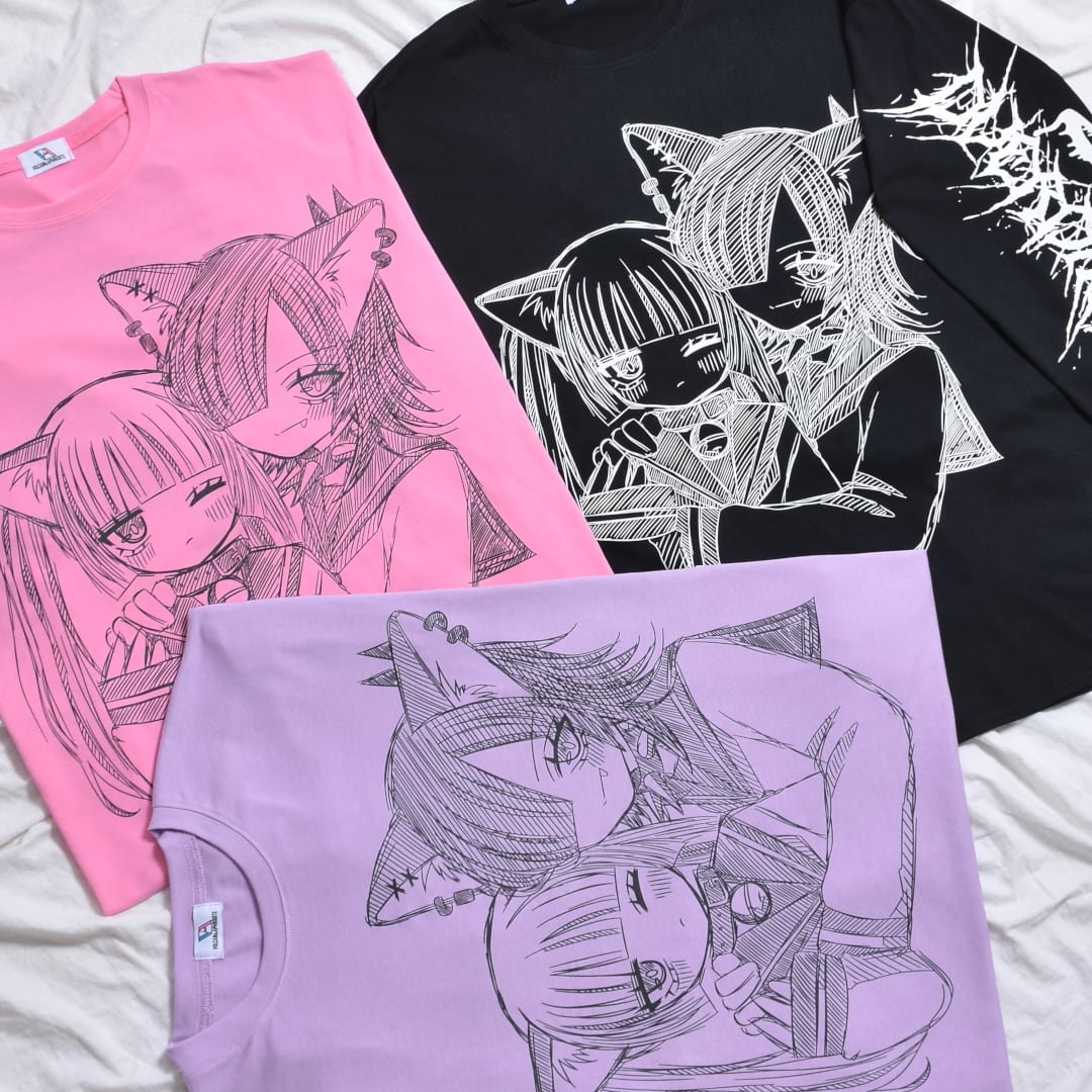 彼女が手書きでイラストをデザインしたオリジナルプリントロンT