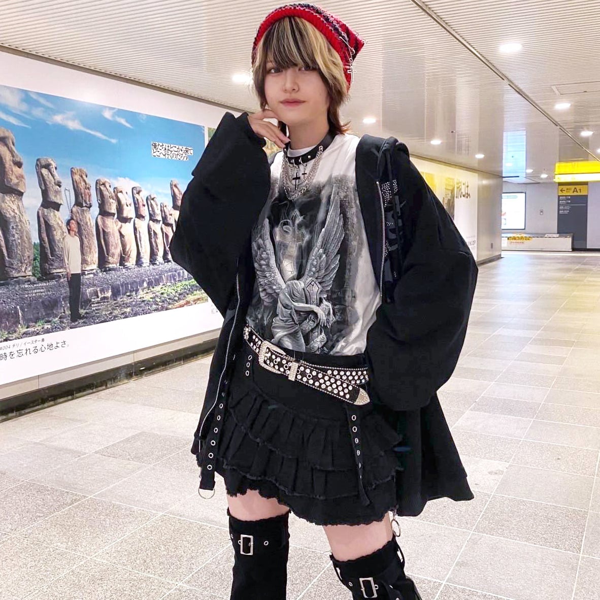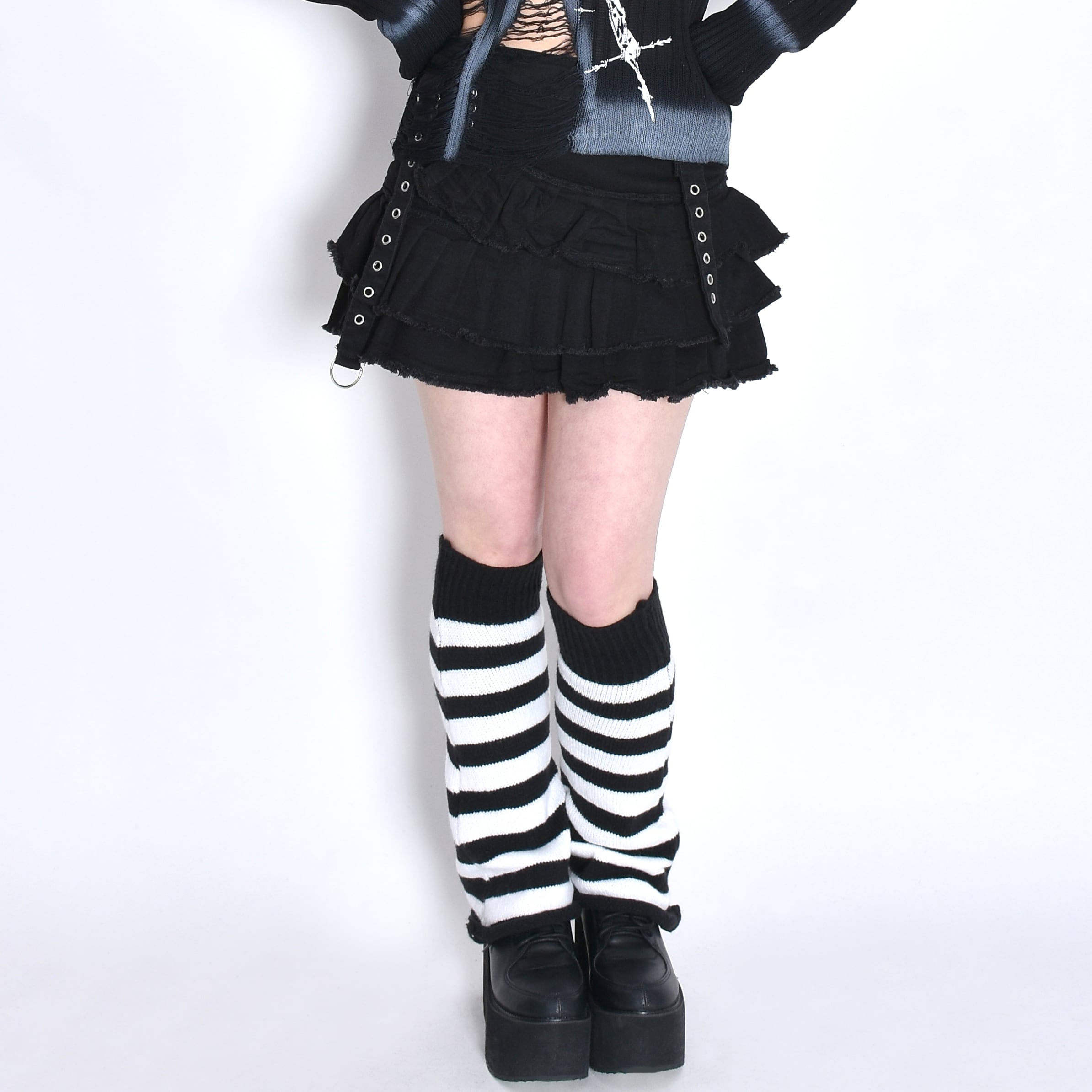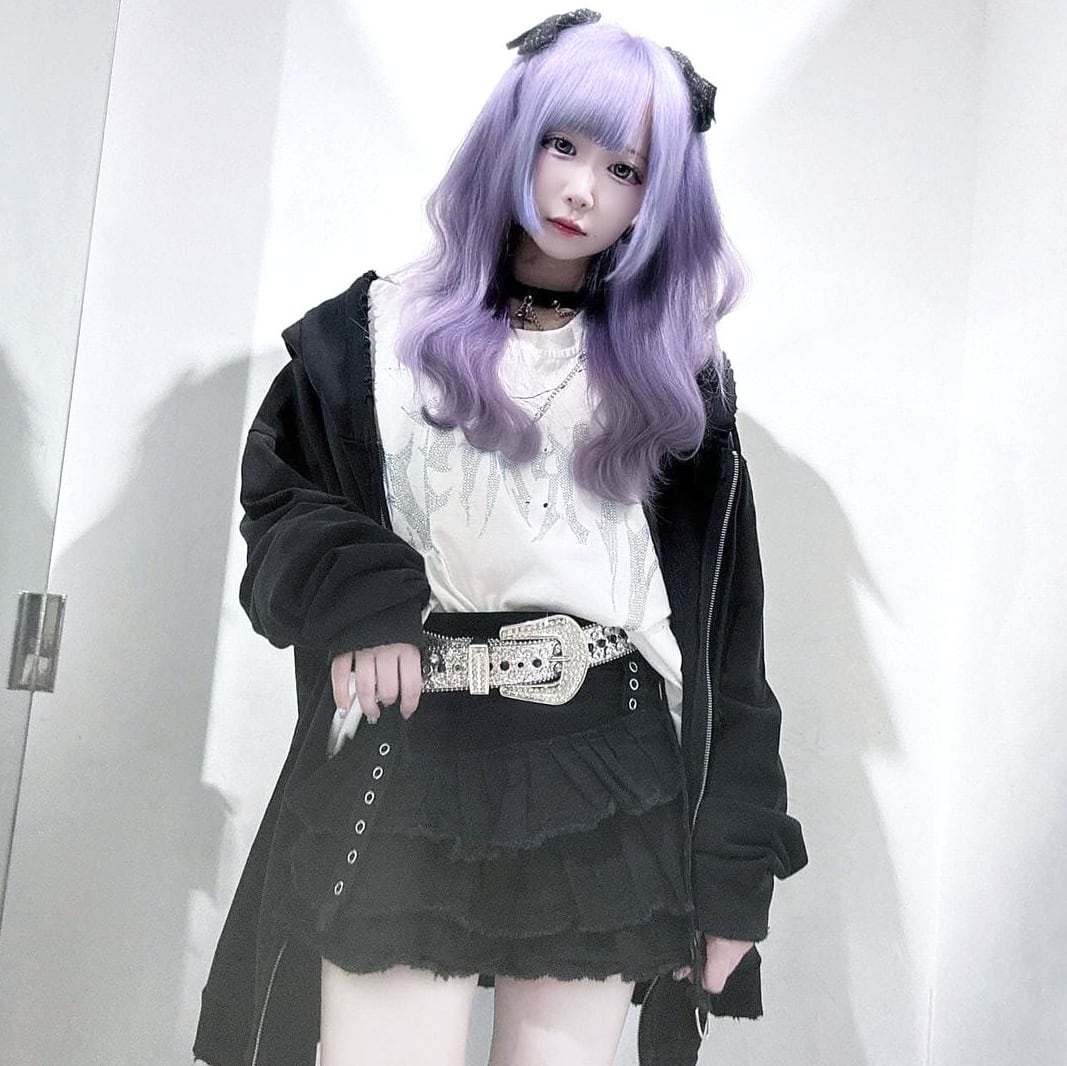 イレギュラーヘムのティアードやハトメ付きのベルトが個性的なミニスカート