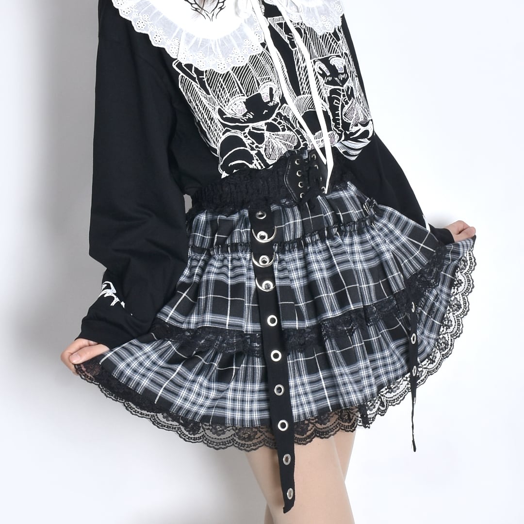 【2/5新カラー追加!】サブカル刺繍★チェックハトメティアードスカート
