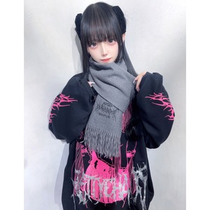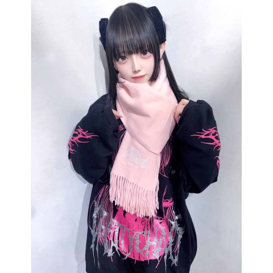 ベーシックな無地デザインにワンポイントで刺繍を施したマフラー