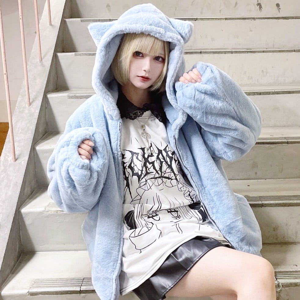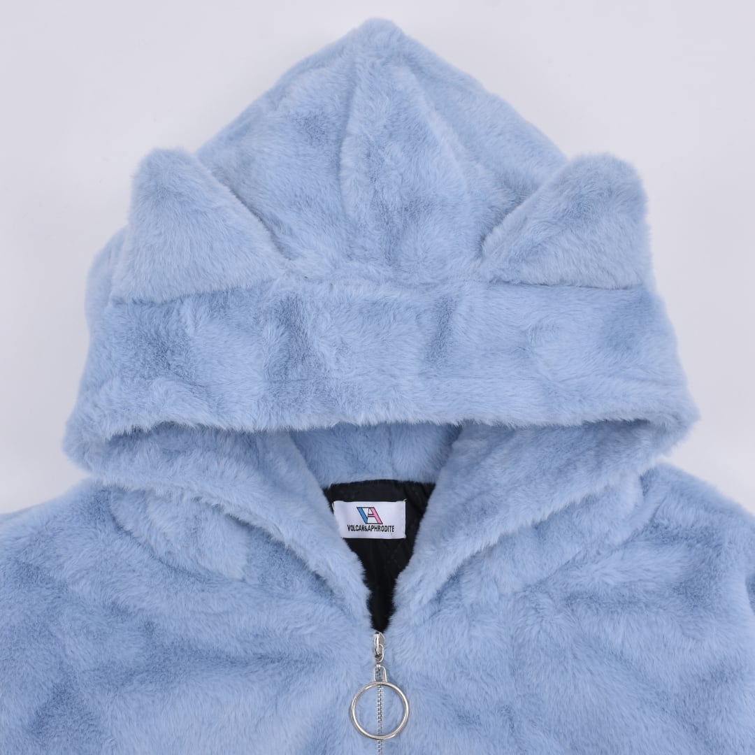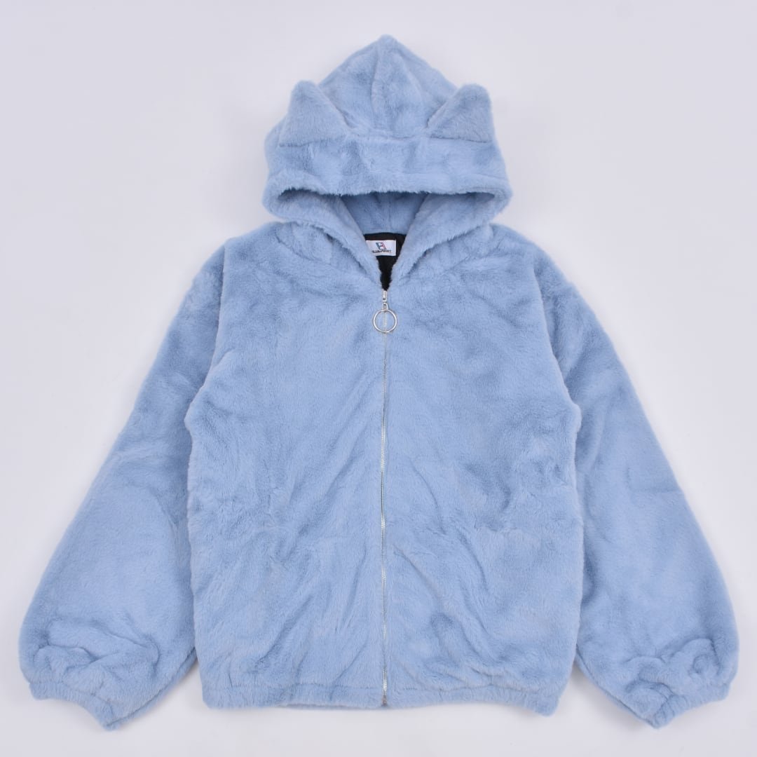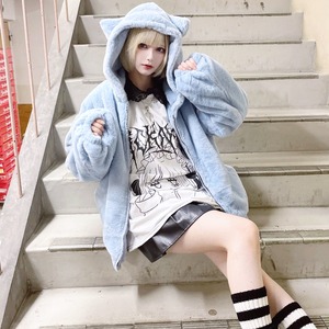 【10/8 再入荷!】ふわもこ ネコ耳ファーBIGブルゾン(BLUE)