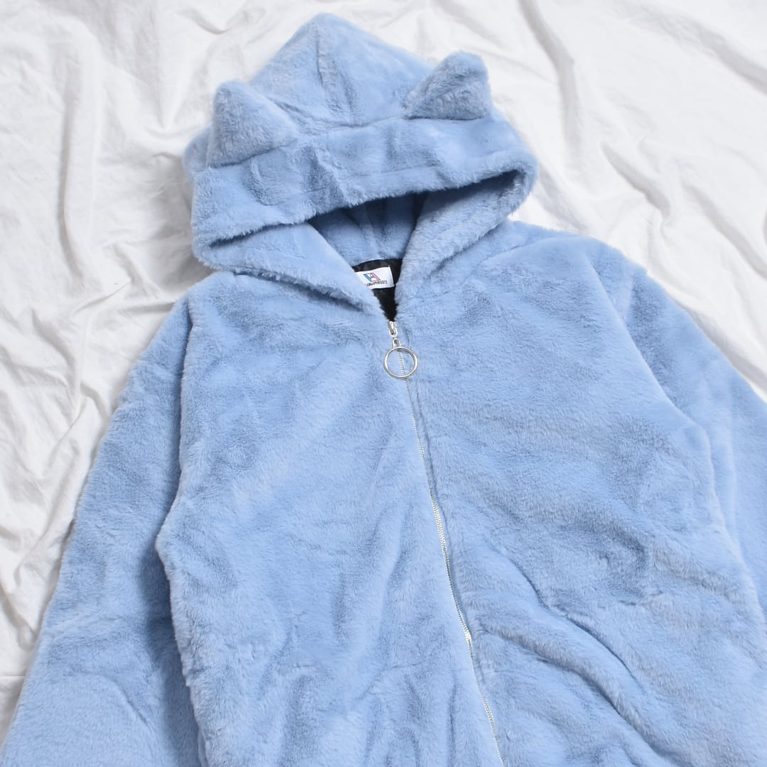 ふわもこ ネコ耳ファーBIGブルゾン(BLUE)