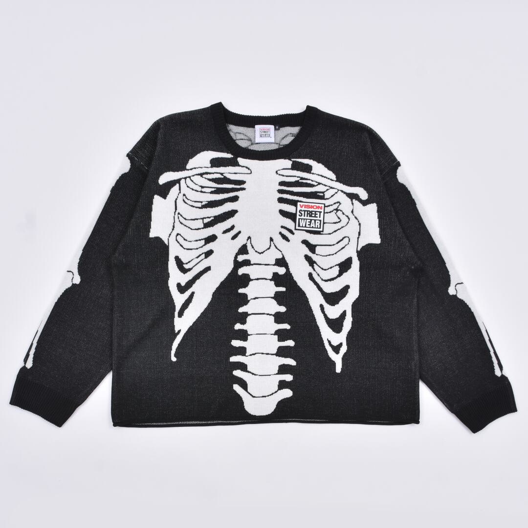フロントとバックのスカルモチーフがインパクト抜群のニット