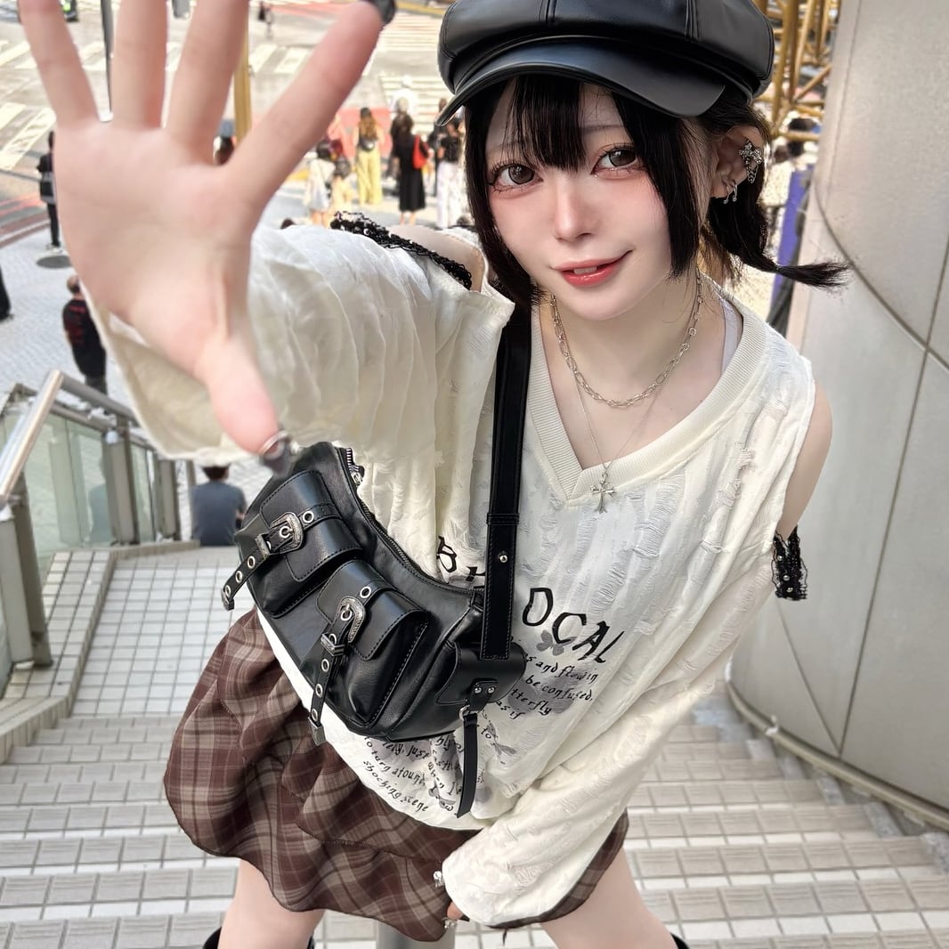 身体に沿うようなバナナ型シルエットのミニバッグ