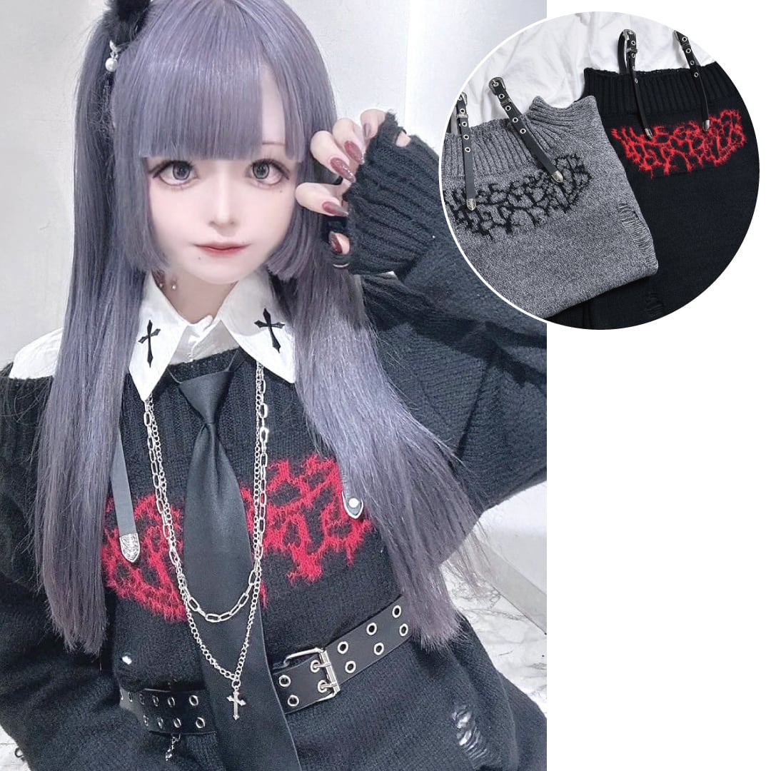 【3点セット】サブカル刺繍 ネクタイ+2連チェーン付き 2WAYシャツ