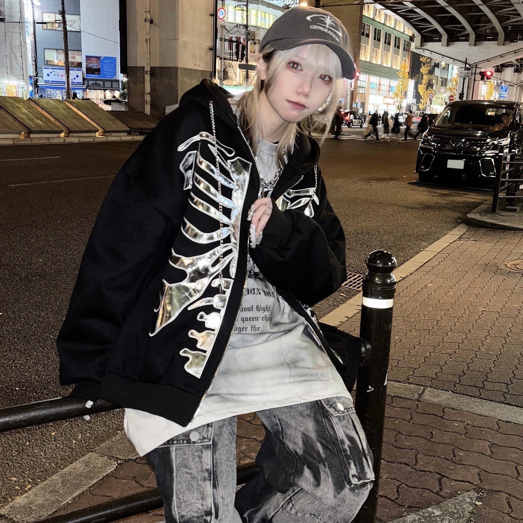 メタリックなボーンモチーフが印象的なZIPパーカー