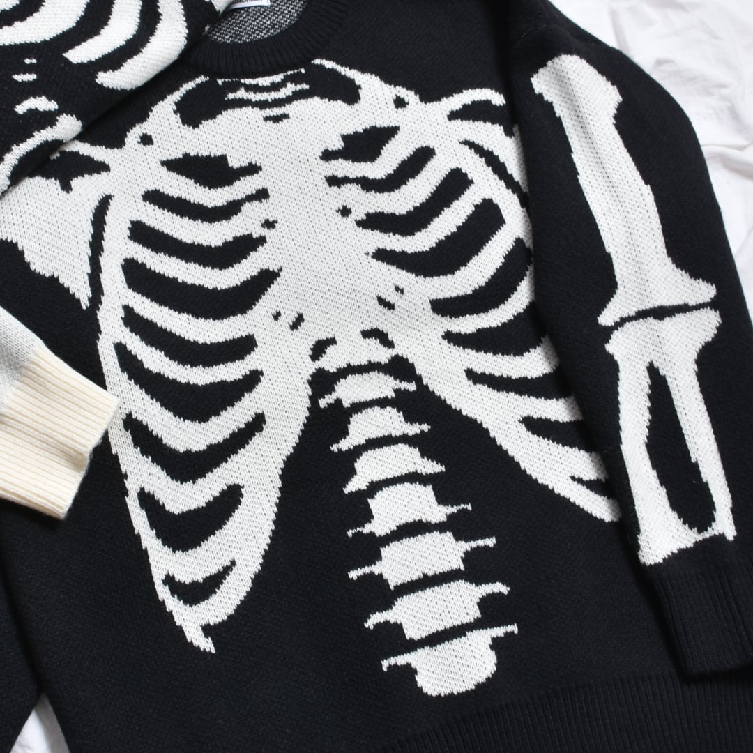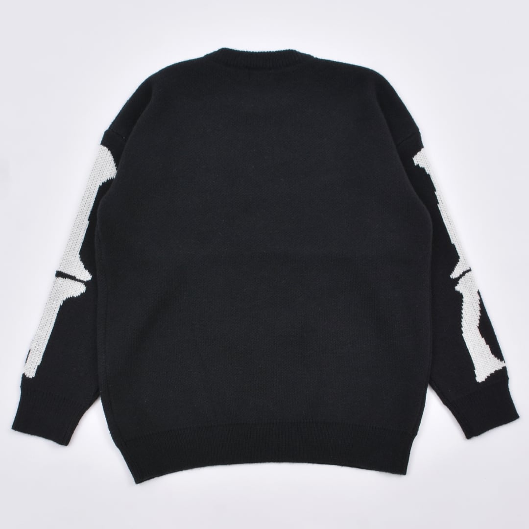 フロントとバックに施された、大胆なボーンモチーフが印象的なニット