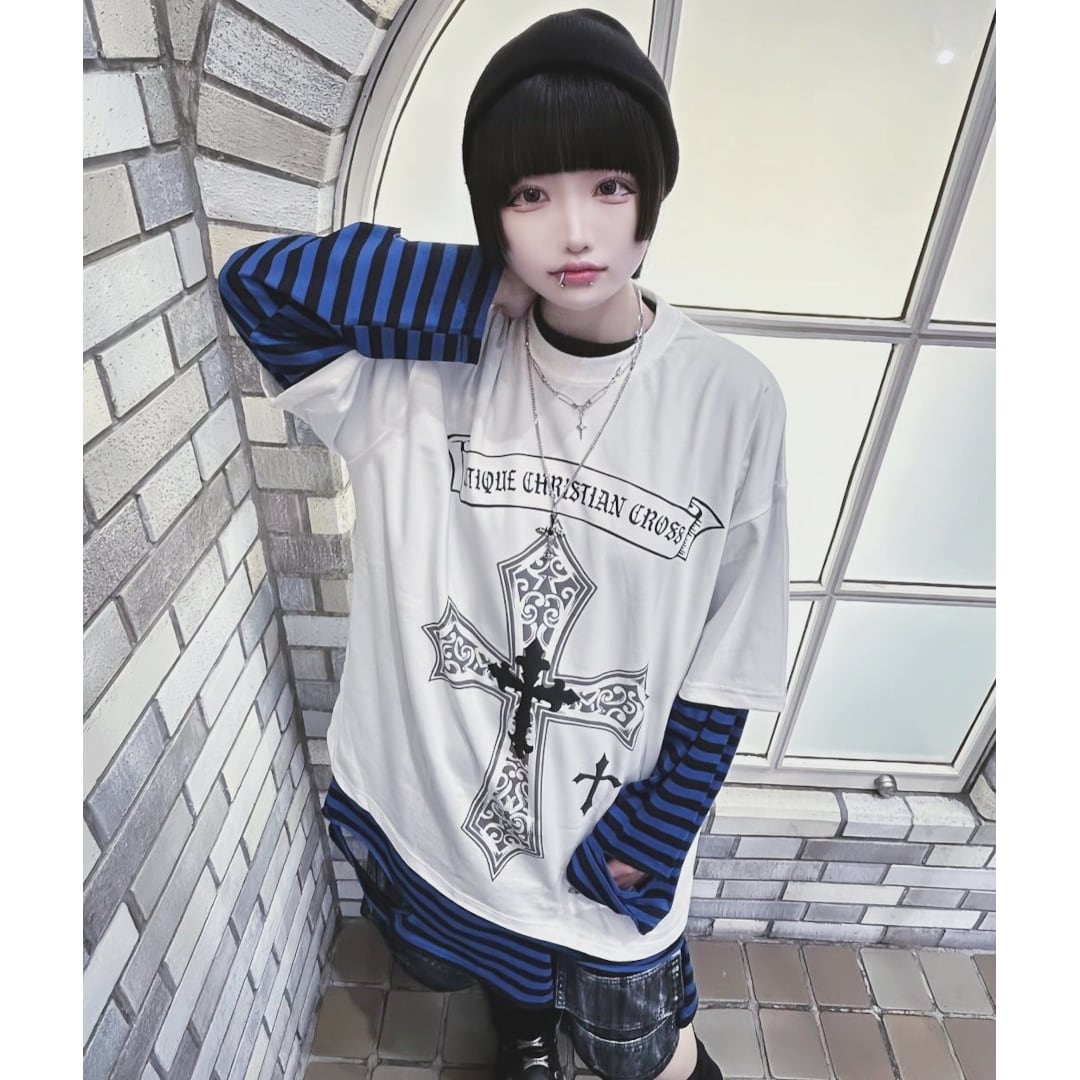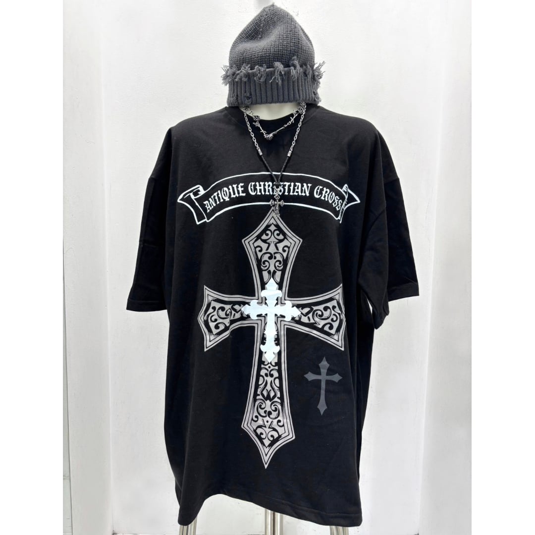フロント、バックの十字架モチーフが印象的なTシャツ